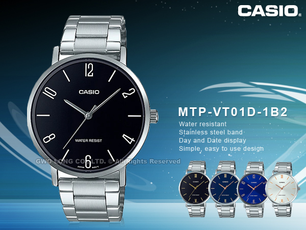 MTP-VT01D-1B2 CASIO 簡約丁字時尚男錶 不鏽鋼錶帶 黑色錶面 日常生活防水 MTP-VT01D