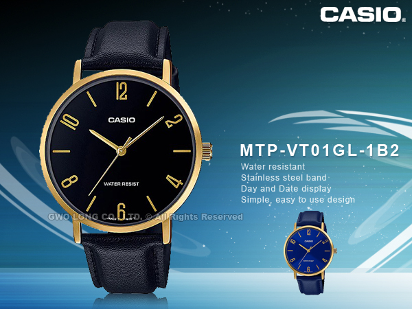 MTP-VT01GL-1B2 CASIO 指針男錶 皮革錶帶 黑色錶面 日常生活防水 MTP-VT01GL