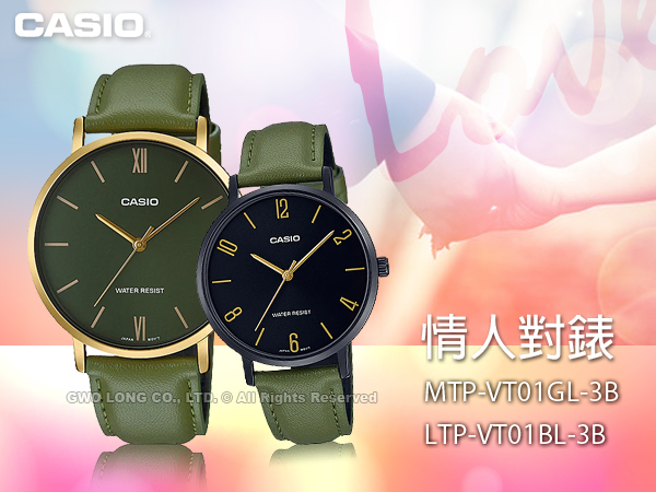 MTP-VT01GL-3B+LTP-VT01BL-3B CASIO 指針對錶 皮革錶帶 生活防水 MTP-VT01GL