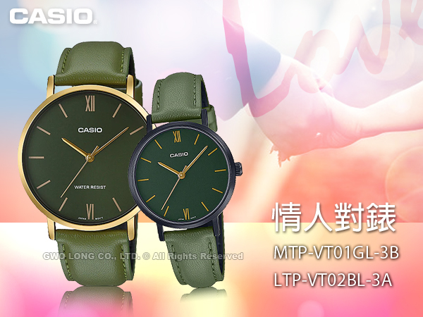 MTP-VT01GL-3B+LTP-VT02BL-3A CASIO 指針對錶 皮革錶帶 生活防水 LTP-VT02BL