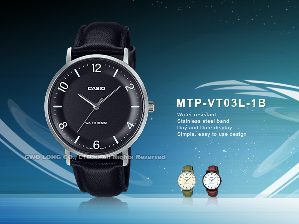 卡西歐 MTP-VT03系列 是一款簡約時尚的指針男士手錶