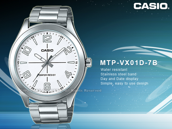 MTP-VX01D-7B CASIO 指針男錶 不鏽鋼錶帶 白色 防水