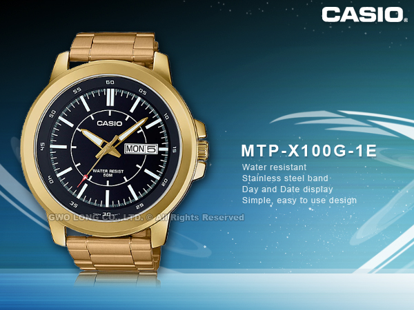 MTP-X100G-1E CASIO 指針男錶 不鏽鋼錶帶 黑色X金色 防水50米