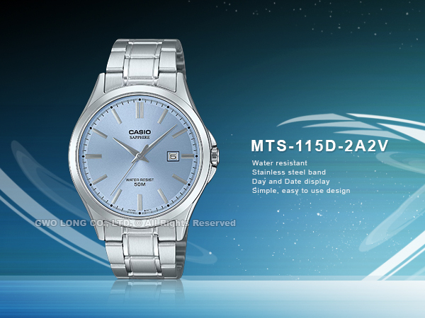 MTS-115D-2A2 CASIO 指針男錶 藍寶石水晶玻璃 不鏽鋼錶帶 防水50米 MTS-115D