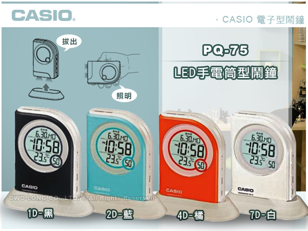 【加購價】PQ-75 CASIO 電子鬧鐘 溫度計 LED手電筒 貪睡功能 嗶嗶聲鬧鈴 底座分離式