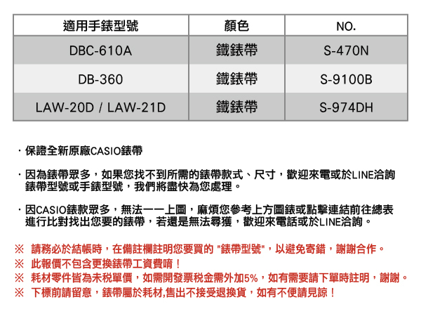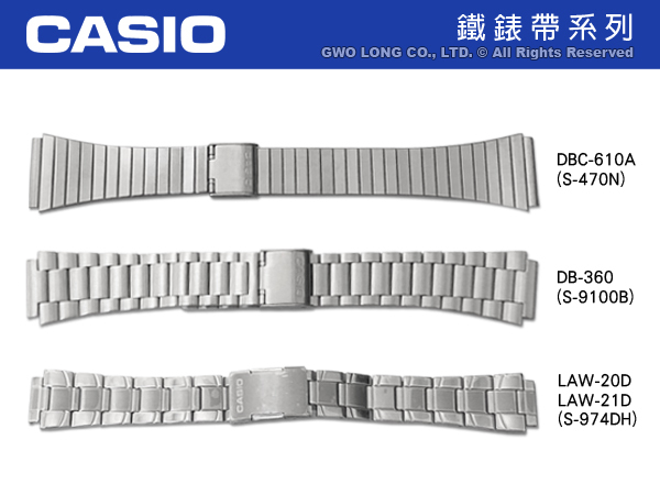 CASIO 鐵錶帶 DBC-610A / DB-360 / LAW-20D / LAW-21D 原廠鐵錶帶