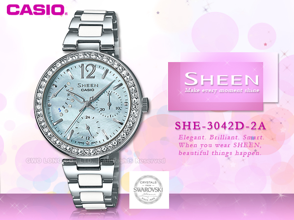SHE-3042D-2A CASIO SHEEN 女錶 不鏽鋼錶帶 藍 施華洛世奇 日星期 顯示