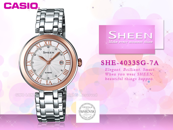 SHE-4033SG-7A CASIO SHEEN 女錶 不鏽鋼錶帶 白面 防水