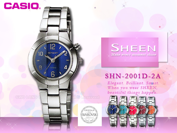 SHN-2001D-2ADF CASIO SHEEN 女錶 不鏽鋼錶帶 藍面 防水 冷光照明