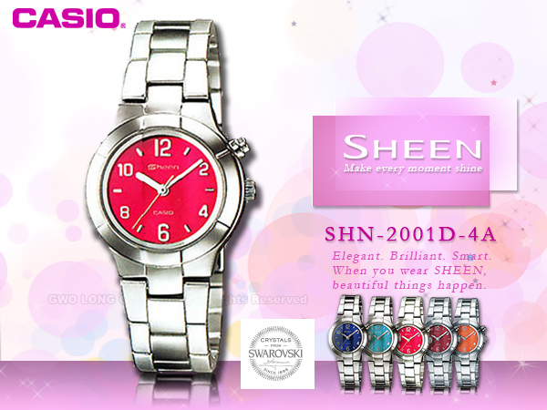 SHN-2001D-4ADF CASIO SHEEN 女錶 不鏽鋼錶帶 橘紅面 防水 冷光照明