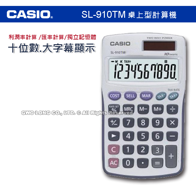 SL-910TM CASIO 中型計算機 十位數 大螢幕顯示