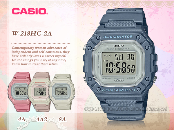 W-218HC-2A CASIO 電子錶 樹脂錶帶 防水50米 LED燈光 碼錶 W-218HC