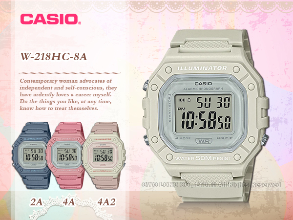 W-218HC-8A CASIO 電子錶 樹脂錶帶 防水50米 LED燈光 碼錶 W-218HC