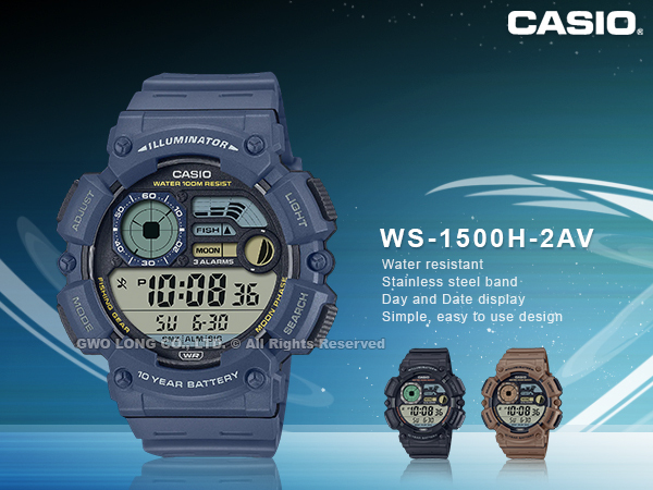 WS-1500H-2A CASIO 多功能 數位男錶 海軍藍 膠質錶帶 月相 釣魚指示 防水100米 WS-1500H