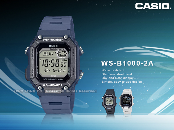 WS-B1000-2A CASIO 運動電子錶 藏青 藍牙手機連線 多功能 步數紀錄 200組記憶 防水100米