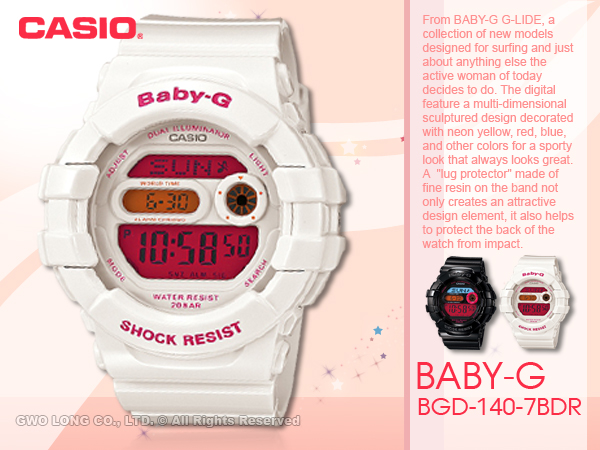 BGD-140-7BDR CASIO BABY-G 運動風電子女錶 橡膠錶帶 白色 防水200米