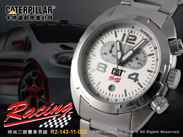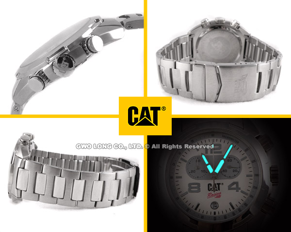 R2.143.11.032 CAT 指針錶 防水100米 不鏽鋼錶帶 日期顯示