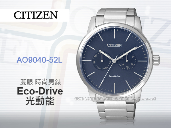 AO9040-52L CITIZEN 光動能雙眼男錶 不鏽鋼錶帶 藍色錶面 防水50米