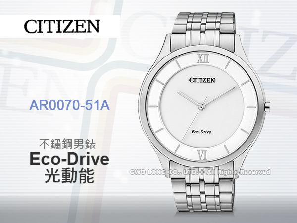 AR0070-51A CITIZEN 指針光動能男錶 不鏽鋼錶帶 白色錶面 日常生活防水