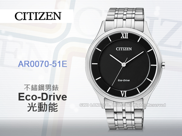 AR0070-51E CITIZEN 指針光動能男錶 不鏽鋼錶帶 黑色錶面 日常生活防水