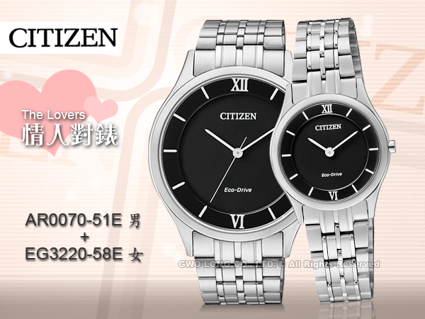 AR0070-51E+EG3220-58E CITIZEN 對錶 指針錶 光動能 生活防水 不鏽鋼錶帶 藍寶石水晶玻璃鏡面