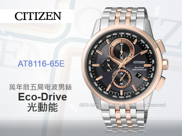 AT8116-65E CITIZEN 光動能電波三眼男錶 不鏽鋼錶帶 藍寶石鏡面 100米防水 日期顯示