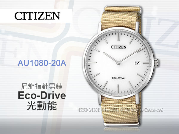 AU1080-20A CITIZEN 光動能中性百搭指針錶 尼龍錶帶 白色錶面 藍寶石玻璃