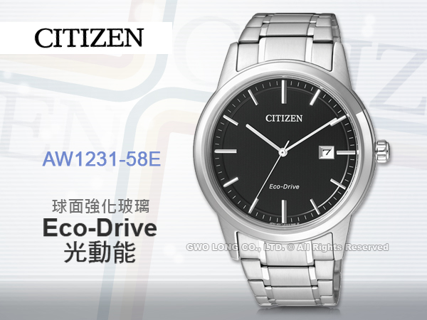 AW1231-58E CITIZEN 光動能指針男錶 不鏽鋼錶帶 黑色錶面 生活日常防水
