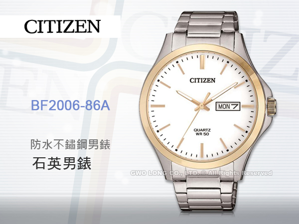 BF2006-86A CITIZEN 石英指針男錶 獨家商品 不鏽鋼錶帶 白色錶面 日常生活防水 強化玻璃鏡面