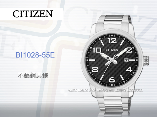 BI1028-55E CITIZEN 石英指針男錶 不鏽鋼錶帶 黑色錶面 生活防水