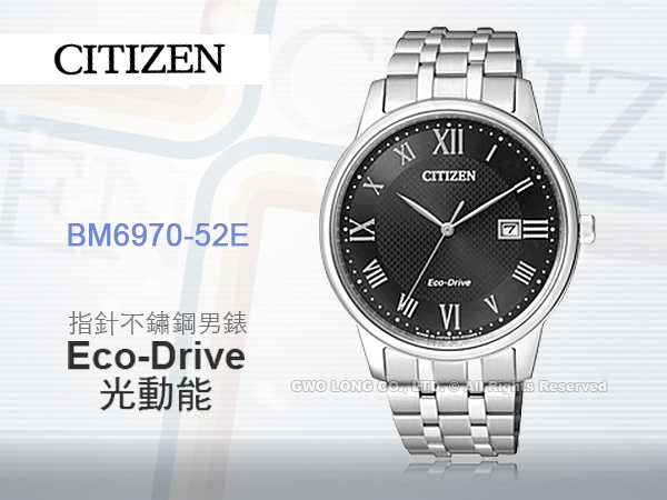 BM6970-52E CITIZEN 光動能指針男錶 不鏽鋼錶帶 黑色錶面 防水30米