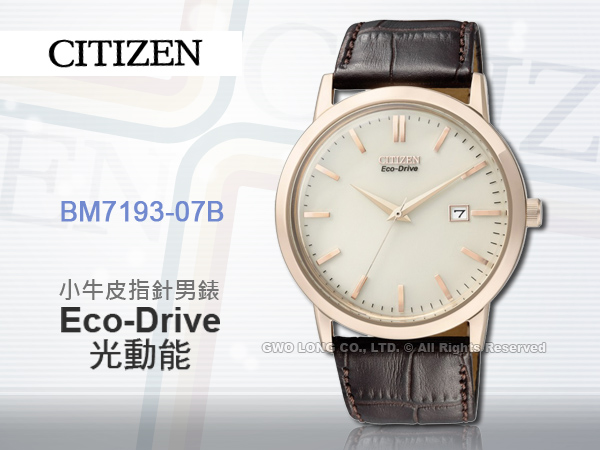 BM7193-07B CITIZEN 光動能男錶 皮革錶帶 白色錶面 水晶玻璃鏡面 日期顯示