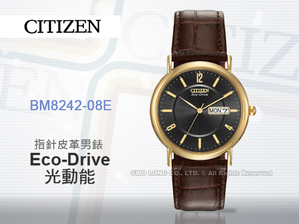 BM8242-08E CITIZEN 石英指針男錶 棕色皮革錶帶 防水30米 日期星期顯示