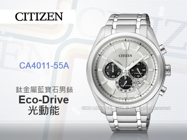 CA4010-58A CITIZEN 三眼男錶 鈦金屬錶帶 白色鏡面 光動能 防水50米