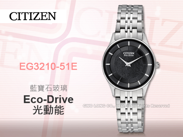 EG3210-51E CITIZEN 光動能指針女錶 不鏽鋼錶帶 黑色錶面 防水30米 藍寶石玻璃鏡面