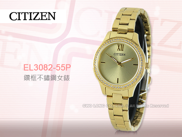 EL3082-55P CITIZEN 石英指針女錶 金色不鏽鋼錶帶 金色錶面 防水30米