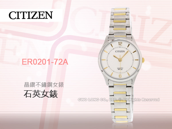 ER0201-72A CITIZEN 石英指針女錶 不鏽鋼錶帶 白色錶面 生活防水