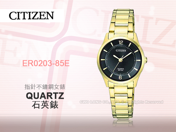 ER0203-85E CITIZEN 石英女錶 不鏽鋼錶帶 礦物玻璃 防水50米