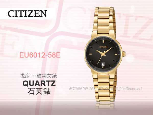 EU6012-58E CITIZEN 石英指針女錶 不鏽鋼錶帶 黑面 防水50米