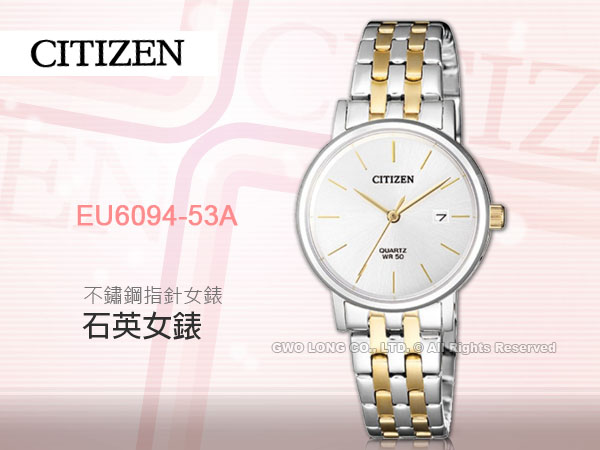 EU6094-53A CITIZEN 石英指針女錶 不鏽鋼錶帶 銀白色錶面 防水50米 日期顯示