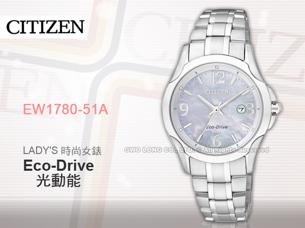 EW1780-51A CITIZEN 光動能指針女錶 不鏽鋼錶帶 白碟貝錶面 生活日常防水