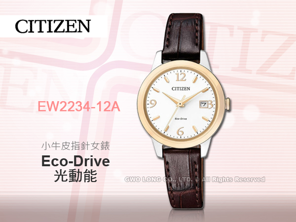 EW2234-12A CITIZEN 光動能指針女錶 皮革錶帶 白色錶面 防水50米