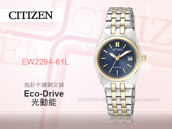 EW2294-61L CITIZEN 光動能指針女錶 不鏽鋼錶帶 藍色錶面 防水100米