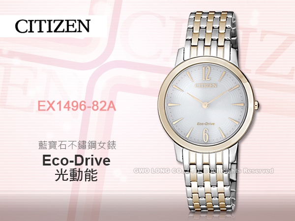 EX1496-82A CITIZEN 光動能指針女錶 不鏽鋼錶帶 白色錶面 日常生活防水 藍寶石玻璃鏡面