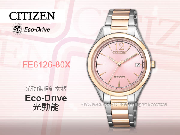 FE6126-80X CITIZEN 光動能指針女錶 不鏽鋼錶帶 防水50米 日期顯示