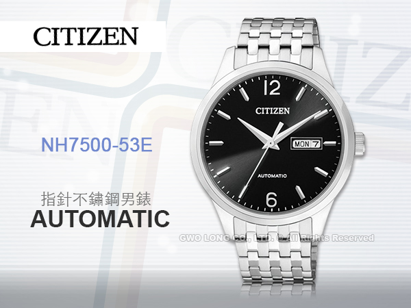 NH7500-53E CITIZEN 機械指針男錶 不鏽鋼錶帶 黑色錶面 防水50米