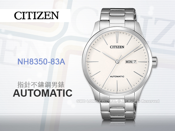NH8350-83A CITIZEN 機械指針男錶 不鏽鋼錶帶 白色錶面 生活日常防水