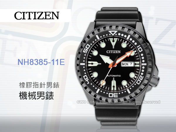 NH8385-11E CITIZEN 機械男錶 合成橡膠錶帶 黑色錶面 防水100米 日期/星期顯示