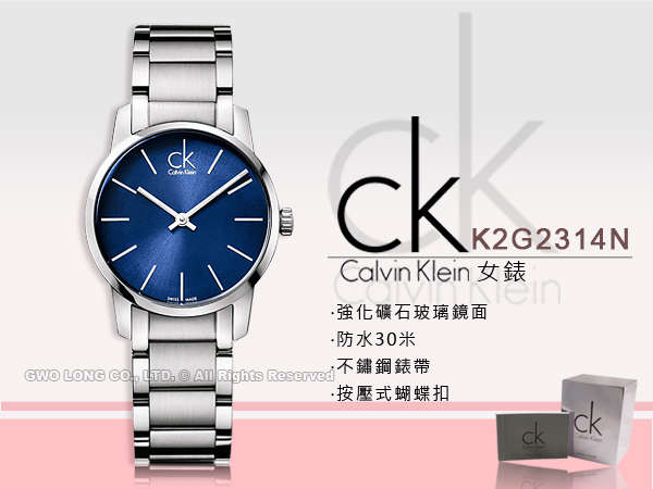 K2G2314N CK女錶 不銹鋼錶帶 Calvin Klein 強化礦物抗磨玻璃 防水30米