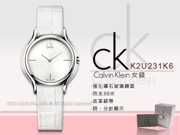 K2U231K6 CK女錶 皮革錶帶 Calvin Klein 礦物抗磨玻璃 防水30米